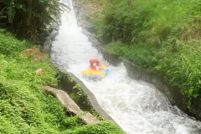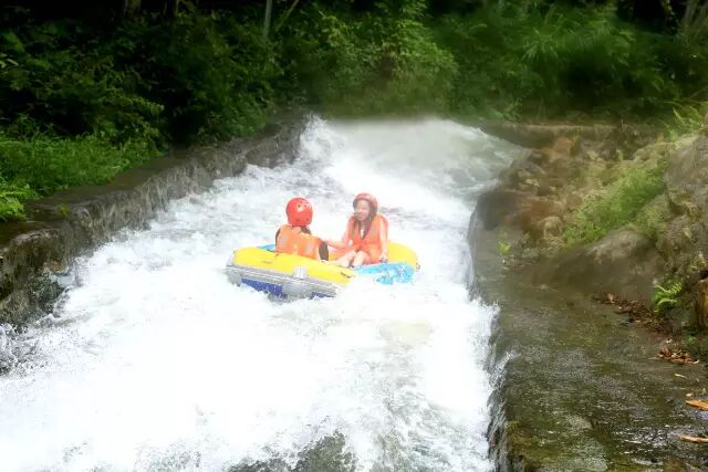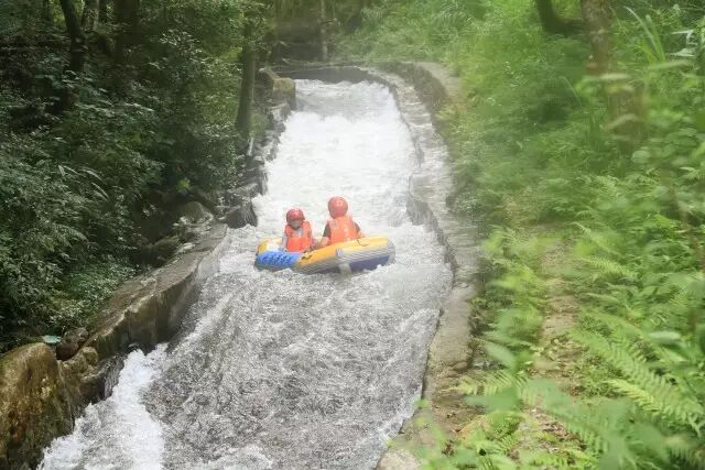 皮筏艇顺流而下,水道的落差很大,连续多处水坡,坡陡水急,皮艇俯冲而下,激起层层浪花,不禁让人心跳加速,冰凉舒爽的感觉又让人大呼过瘾,更激起了大家激流勇进的欲望。
